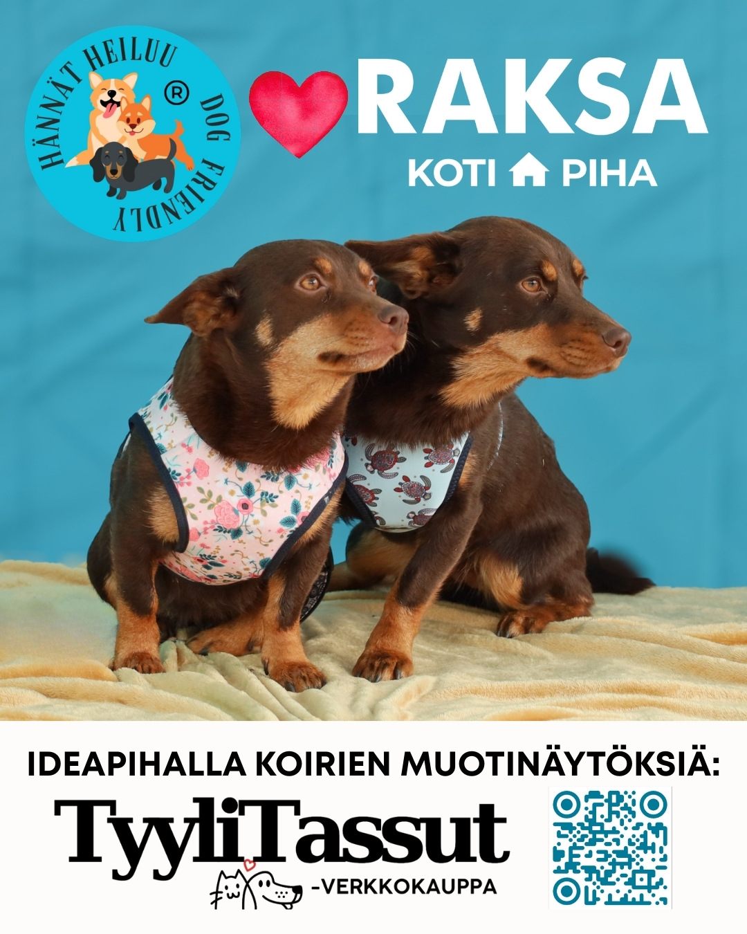 Haemme parhaillaan malleja koirien muotinäytöksiin, olisiko sinulla pieni hännänheiluttaja dogwalkille? Ota yhteyttä 040 3384030.