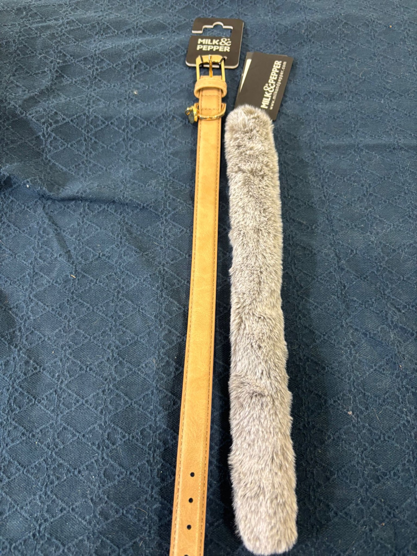 Keinoturkis kaulapanta, joka muuntautuu tyylikkääksi nudenväriseksi kaulapannaksi lämpimään aikaan. Viisi eri pituutta 25 cm, 30 cm, 35 cm, 40 cm  ja 45 cm. Saatavilla myös nudenvärinen talutushihna (tiedustele lisää: info@heiluu.fi)