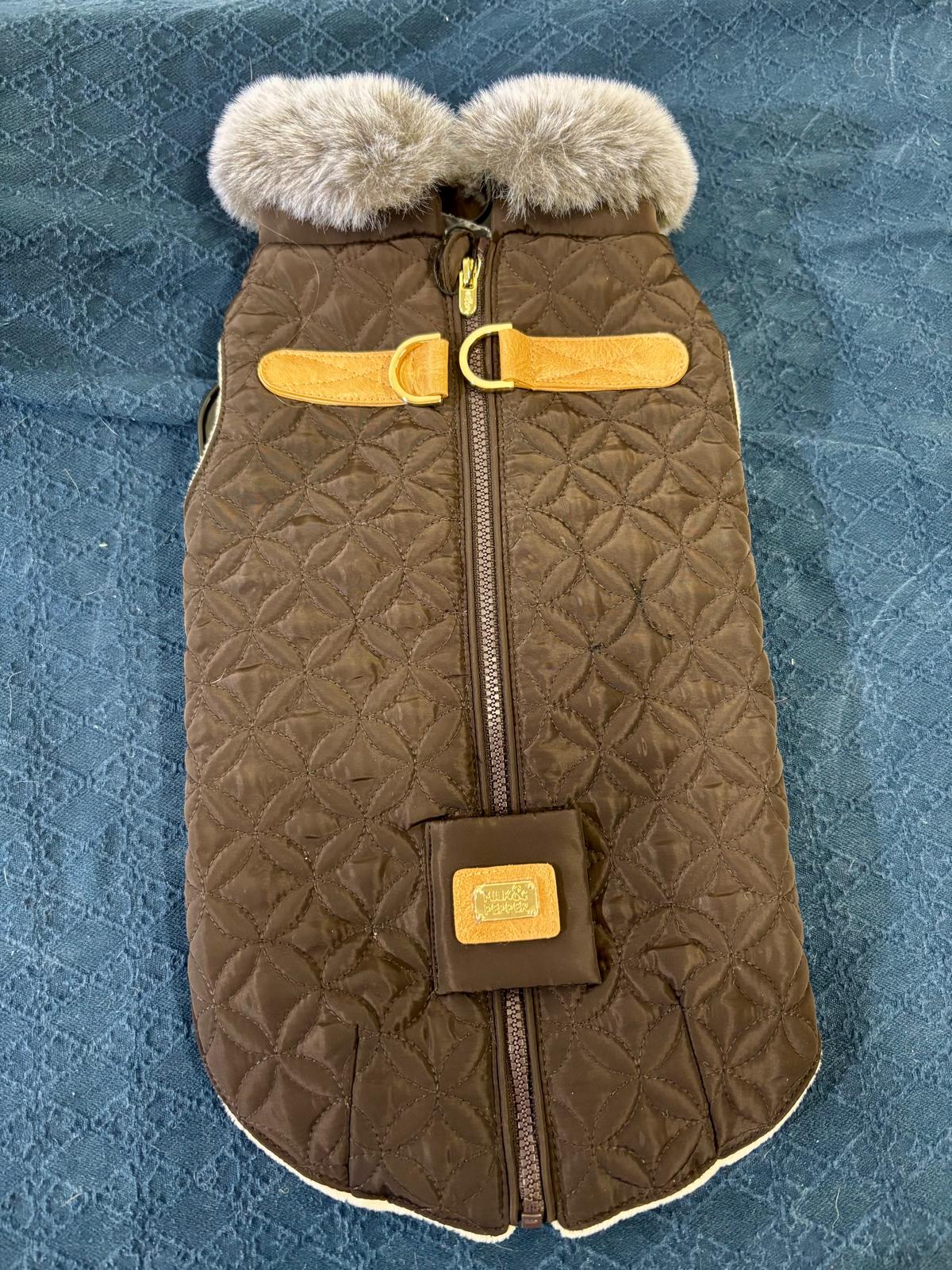 Vettähylkiva pintamateriaali ja integroidut valjaat tyylikkään ruskeassa takissa, Irrotettava keinoturkiskaulus, vuoraus erittäin pehmeää mikrofleeseä. Kätevä malli pukea selkäpuolelta, tyylikkåitä yksityiskohtia.