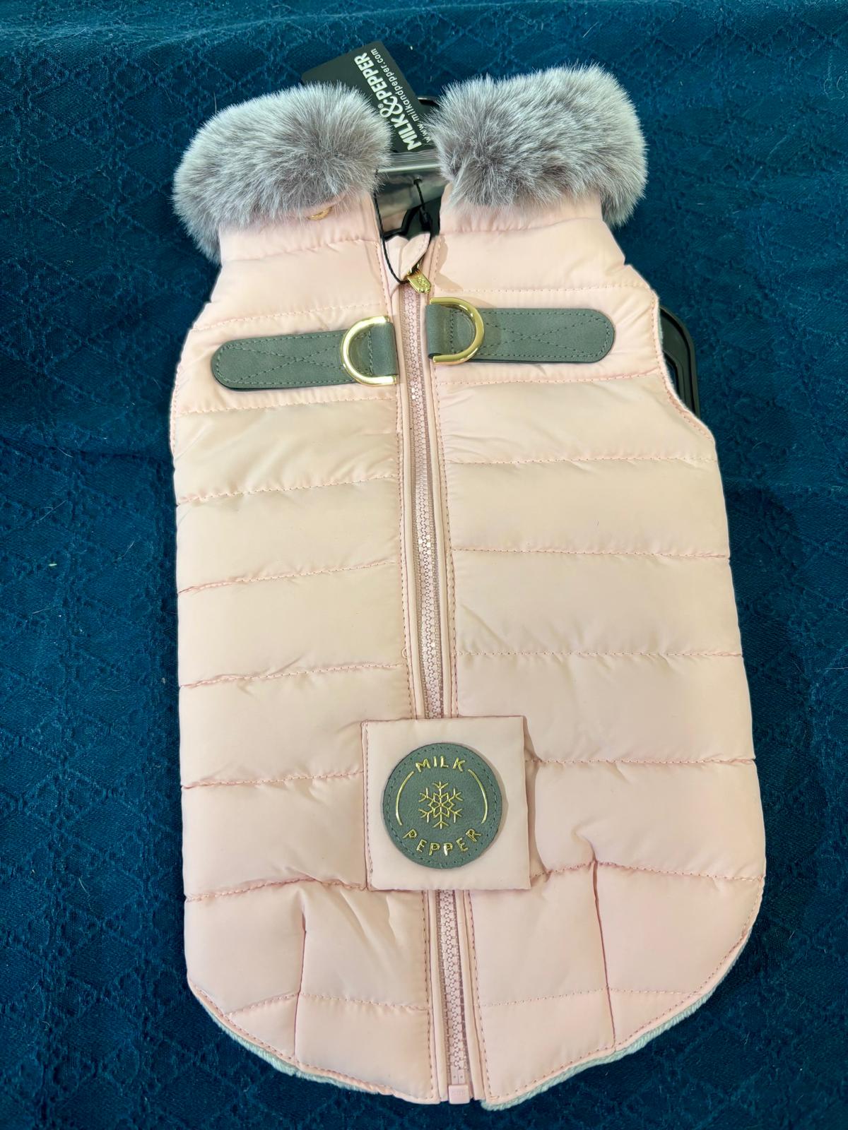 Vettähylkivä pinta, integroidut valjaat, irroitettava keinoturkiskaulua ja erittäin pehmeää mikrofleesevuori. Hempeä roosa kerää katseita kaupungilla. Tyylitietoisen valinta.